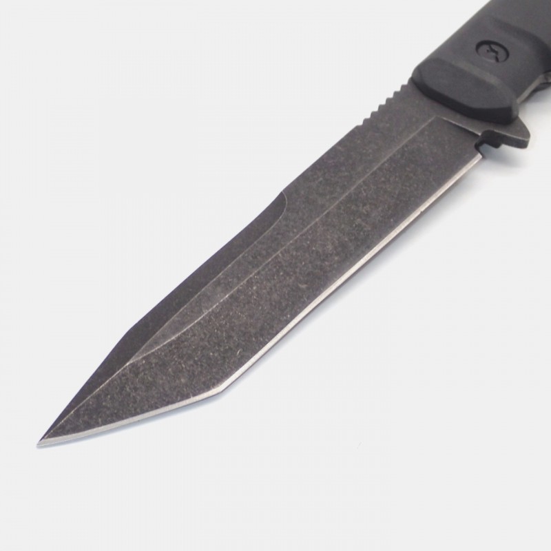 This is very strong bushcraft hunting survival knife has a 16 cm long stainless steel (stainless) shine sharp blade with a sawtooth cut on the back of the blade. Handle made with non-slip quality plastic grip. Nylon knife's sheath included too. Knife can be used on the belt for convinient use. This knife includes all you need for a bushcraft, camp and outdoor.