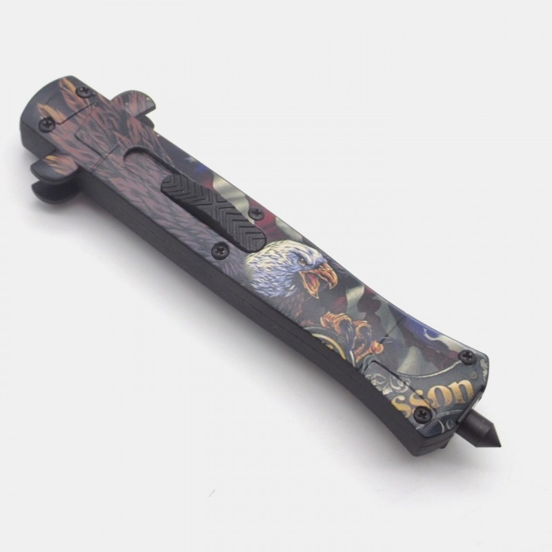 - Coltello a serramanico in pollici con meccanismo in acciaio inossidabile. Manico leggero del coltello in kydex (plastica resistente) con protezione antiscivolo.